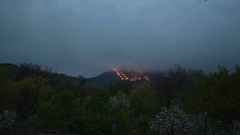 Ուջանում ապրիլի 24-ին երիտասարդները կրակ են վառում Փեդե դոշ կոչվող սարի լանջին, որը տեսանելի է թուրքական բնակավայրերից