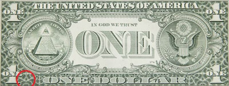 Այստեղ Ձեզ կրկին պետք կգա մեծացնող ապակին; Մեկ թվից աջ, ձախ կողմում գլուխ կտեսնեք: Շատ մարդիկ ենթադրում են, որ դա հնդկական աստված Շիվայի պատկերն է: Չնայած բոլոր թեորիաներին և կասկածներին, մեկ դոլարանոց թղթադրամը դեռևս մեծ գաղտնիք է մնում: Իսկ Դուք կարողացա՞ք գտնել այս գաղտնի նշանները: