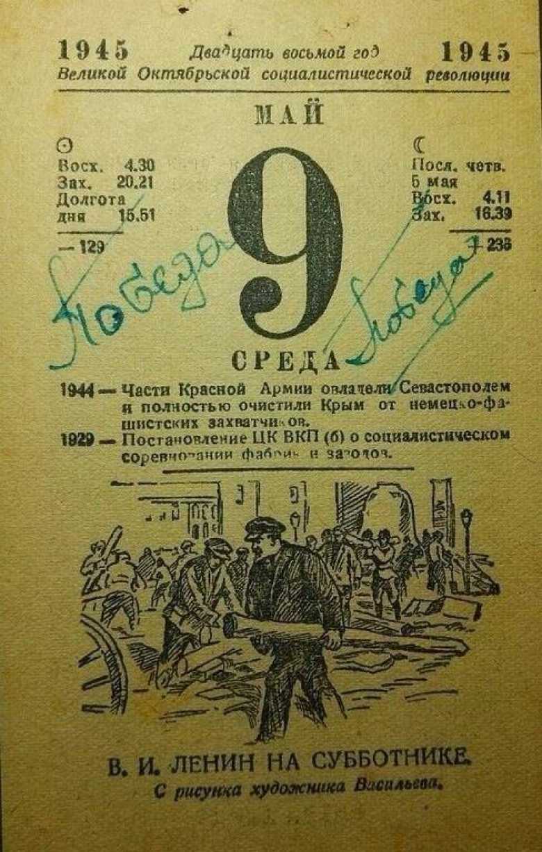 Հաղթանակի օրվա օրացույցի թերթիկը (լուսանկար) Բլոգ 9 Մայիս, 2016 10:58 Կիսվել Հովիկ Չարխչյանը ֆեյսբուքյան իր էջում գրում է. Հաղթանակի օրվա օրացույցի թերթիկը: Կիսվել
