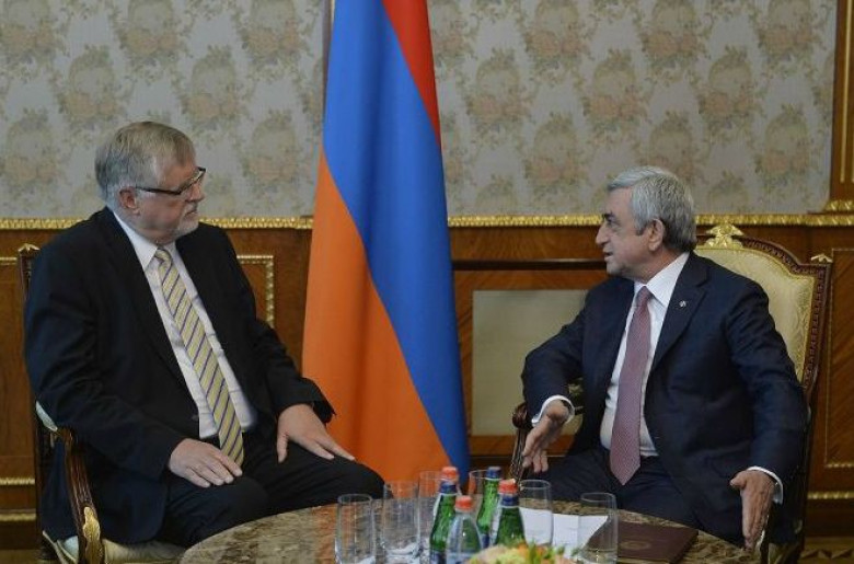 ՔաղաքականՀՀ Նախագահ Սերժ Սարգսյանն այսօր ընդունել է Հարավային Կովկասի և Վրաստանի ճգնաժամի հարցերով ԵՄ Հատուկ ներկայացուցիչ Հերբերտ Զալբերին: Հանրապետության Նախագահը ներկայացրել է իր տեսակետը Ադրբեջանի ապակառուցողական և ռազմատենչ կեցվածքի արդյունքում իրավիճակի լարման և բանակցային գործընթացը խոչընդոտելու այդ երկրի դրդապատճառների մասին: