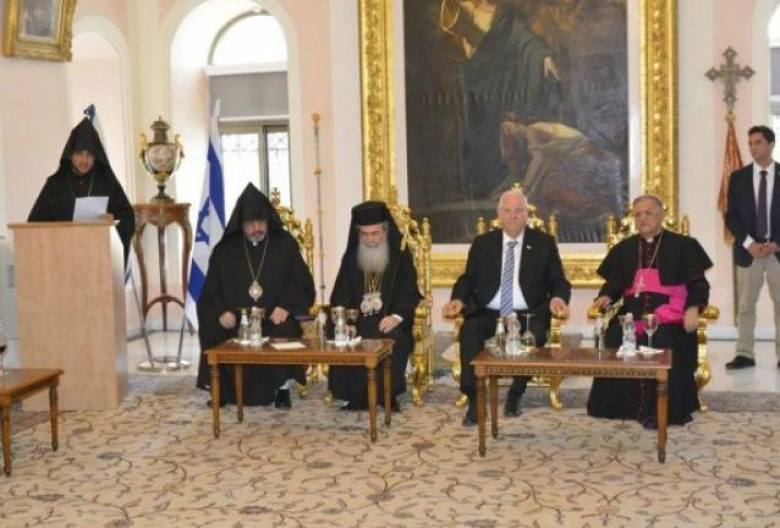 ՔաղաքականԻսրայելի նախագահ Ռեուվեն Ռիվլինը մայիսի 9-ին այցելել է Երուսաղեմի Հայոց պատրիարքարան՝ իր ողջույնները փոխանցել Սուրբ հողում գտնվող տարբեր քրիստոնեական եկեղեցիների առաջնորդներին: Ռիվլինի հետ հանդիպմանը հայկական պատրիարքարանում ներկա են եղել Հայ առաքելական, հույն-օրթոդոքս և լատինական եկեղեցու Երուսաղեմի թեմի առաջնորդները:
