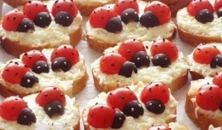 Զարդարել լոլիկով և զեյթունով: