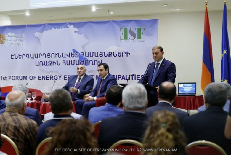 «Հաշվի առնելով այս ամենը և գիտակցելով մայրաքաղաքի պատասխանատվությունը՝ որպես խոշոր էներգասպառող, Երևանն այսօր քաղաքային տնտեսության տարբեր ոլորտներում իրականացնում է էներագախնայողությանն ուղղված ծրագրեր: Եվ որպես ռազմավարական քայլ, մենք միացել ենք նաև Եվրոպական միության «Քաղաքապետերի դաշնագիր» նախաձեռնությանը՝ մեր լիազորությունների շրջանակում պարտավորվելով մինչև 2020 թվականը առնվազն 20%-ով կրճատել ջերմոցային գազերի արտանետումներն ու կայուն էներգետիկ զարգացման սկզբունքներին համապատասխան ապահովել քաղաքային տնտեսության զարգացումը: Այդ նպատակով մշակվել է «Երևան քաղաքի Կայուն էներգետիկ զարգացման գործողությունների ծրագիրը», որտեղ նախանշվել են քաղաքային տնտեսության ենթակառուցվածքների էներգաարդյունավետության բարձրացմանն ուղղված կոնկրետ միջոցառումները։ Պետք է հատկանշեմ, որ մեր կողմից առանձնակի է կարևորվում Եվրոպական նախաձեռնություններին տարբեր ձևաչափերով միանալը, ինչպես նաև Եվրոպական կառույցների հետ սերտ համագործակցությունը, ինչի արդյունքում բազմաթիվ բնագավառներում արդեն իսկ ունենք հաջողված ծրագրեր»,- ընդգծել է քաղաքապետը։