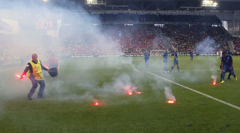 Մրցավարը անգամ ստիպված է եղել դադարեցնել խաղը 86-րդ րոպեին, երբ այվող հրավառիչ է նետվել խաղադաշտ: