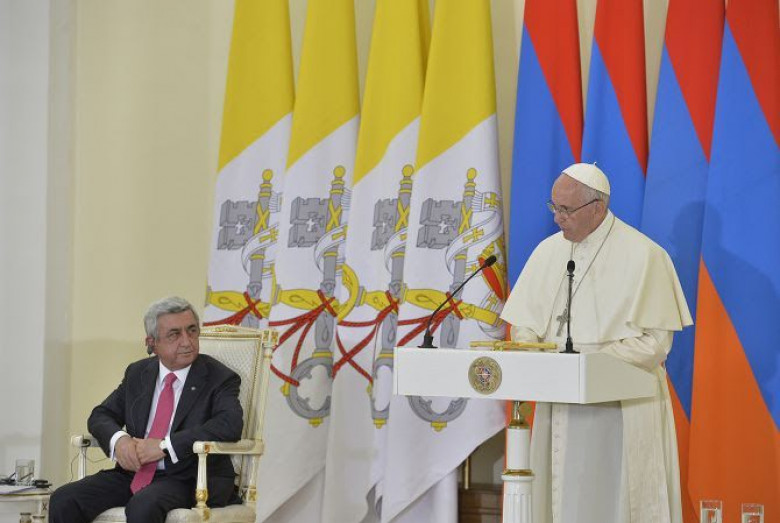 Հռոմի Սրբազան Քահանայապետ Ֆրանցիսկոս Պապը ելույթ է ունեցել ՀՀ Նախագահի նստավայրում հունիսի 24-ին` ՆախագահՍերժ Սարգսյանի, իշխանությունների, հասարակայնության և Երևանում հավատարմագրված դիվանագիտական կորպուսիներկայացուցիչների հետ հանդիպման ժամանակ: