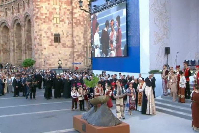 ՀասարակությունՀանրապետության հրապարակում Հռոմի Պապի և Ամենայն Հայոց կաթողիկոսի մասնակցությամբ խաղաղության աղոթքի և էկումենիկ արարողության ընթացքում Հայաստանի Հանրապետության անունից Հռոմի Պապը նվեր ստացավ Նոյան Տապանի մանրակերտ: