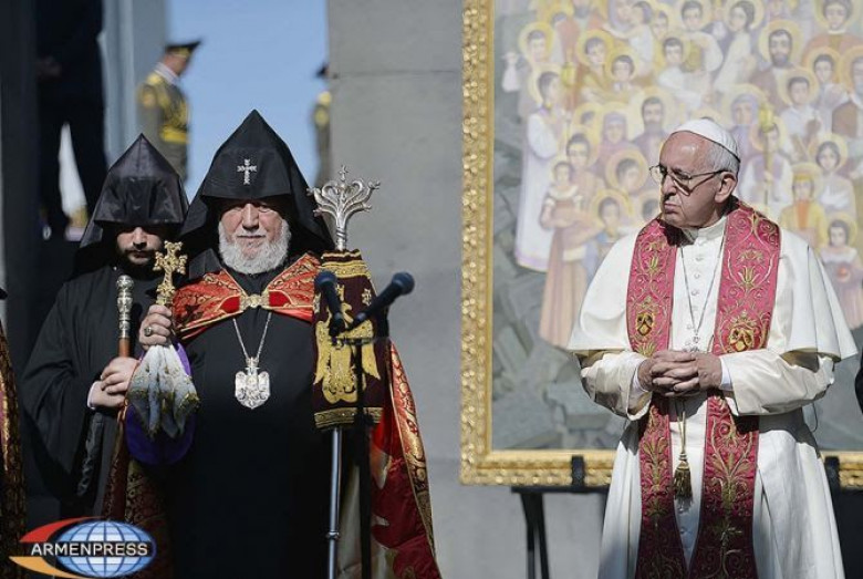Հռոմի Սրբազան Քահանայապետ ՖրանցիսկոսՊապը հունիսի 24-ին ելույթ է ունեցել ՀՀՆախագահի նստավայրում Նախագահ Սերժ Սարգսյանի, իշխանությունների, հասարակայնության և Երևանումհավատարմագրված դիվանագիտական կորպուսի ներկայացուցիչների հետ հանդիպման ժամանակ: Ելույթում նա, շեղվելովնախապես պատրաստած լրատամիջոցների ներկայացուցիչներին նախօրոք բաժանած ելույթի տեքստից, կիրառել էՑեղասպանություն եզրույթը: