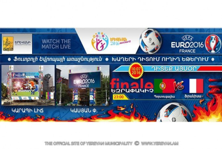 Մինչ ֆուտբոլի Եվրոպայի առաջնության Ֆրանսիա-Պորտուգալիա եզրափակիչ խաղի մեկնարկը` ժամը 23:00-ն, կազմակերպված տոնական ծրագրի շրջանակում իրենց կատարումներով հանդես կգան սիրված երգիչ-երգչուհիներ, ներկաներին կողջունեն հանրահայտ մարզական մեկնաբաններ, ինչպես նաև կանցկացվեն անակնկալ խաղարկություններ, որոնք կշարունակվեն նաև ԵՎՐՈ 2016-ի եզրափակիչ խաղի ընդմիջման ընթացքում: