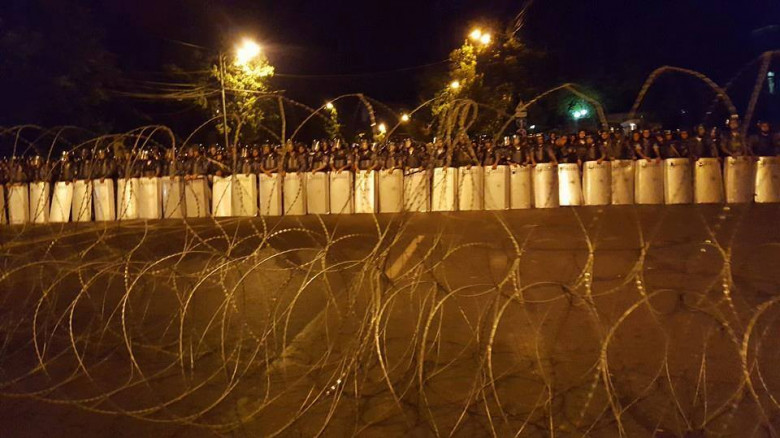 Ոստիկանները փշալարերով փակել են Բաղրամյան պողոտան