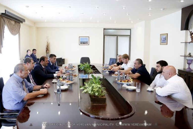 Ողջունելով հյուրերին` Երևանի քաղաքապետը նախ շնորհավորել է նրանց գրանցած փայլուն հաղթանակների առթիվ և շնորհակալություն է հայտնել Հայաստանի պատիվը բարձր պահելու համար: