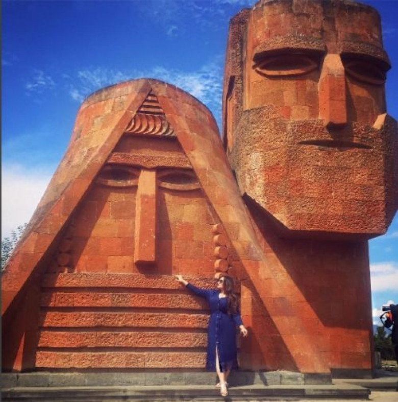 Այնուհետեւ դիմահարդարը հասել է Արցախ եւ լուսանկարվել «Մենք ենք, մեր սարերը» (նաեւ հայտնի որպես՝ «Պապիկ-տատիկ») կոթողի մոտ։