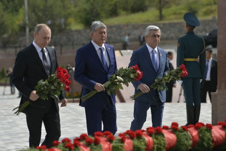 ՔաղաքականԱվարտվել է Նախագահ Սերժ Սարգսյանի աշխատանքային այցը Ղրղզստանի Հանրապետություն: Սեպտեմբերի 17-ի առավոտյան ՀՀ Նախագահը Ղրղզստանի Նախագահ Ալմազբեկ Աթամբաևի և ԱՊՀ մասնակից պետությունների ղեկավարների խորհրդի նիստին մասնակցած ՌԴ Նախագահ Վլադիմիր Պուտինի, Մոլդովայի վարչապետ Պավել Ֆիլիպի հետ այցելել է Արաշան համայնքում գտնվող Հայրենական մեծ պատերազմի մասնակիցների և զոհերի հիշատակին նվիրված հուշա համալիր՝ ծաղկեպսակ դրել և հարգանքի տուրք մատուցել: Պատվիրակությունների ղեկավարները հարգանքի տուրք են մատուցել նաև Ղրղզստանում 1916թ. ողբերգական իրադարձությունների ընթացքում զոհվածների հիշատակին: