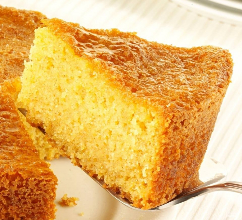 6. Միախառնել զանգվածը ջրի հետ և խառնել: Լցնել տապակի մեջ և թխել 20 րոպե: