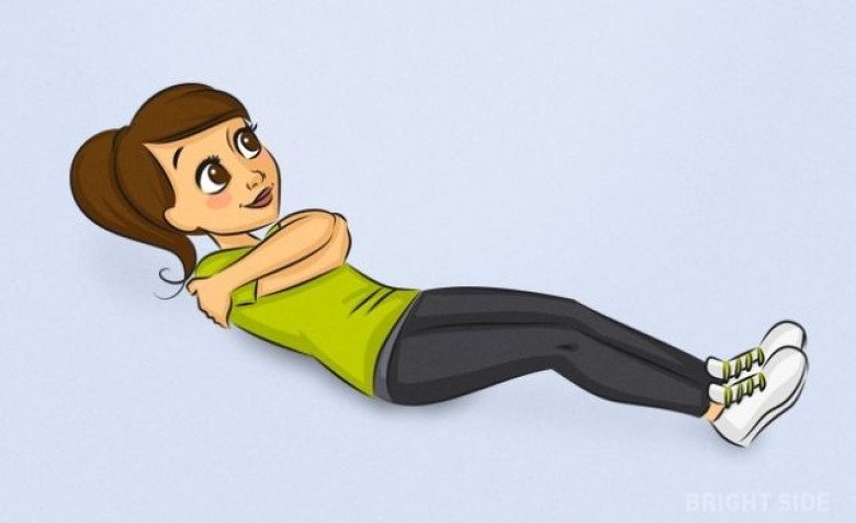 Ինչպես կատարել. ուղիղ պառկեք հատակին և ձեռքերը պարզեք դեպի վերև։ Ապա իրար խաչեք ձեռքերը և ձգվեք այնքան, ինչքան կարող եք։ Այդ ընթացքում ոտքերը ուղիղ պահեք։ Այսպես արեք մոտ 1 րոպե շարունակ՝ կարճ դադարներով։