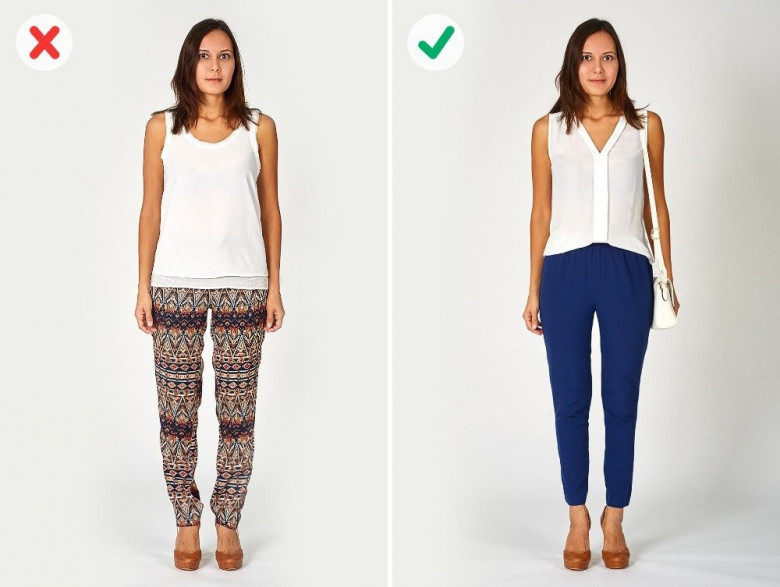 Խոշոր պրինտը մարմինն ավելի գեր է ցույց տալիս, իսկ սանդալները կարճացնում են ոտքերը: