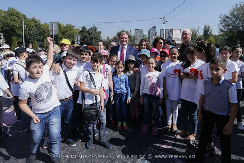 Պատկերված նկարների գերակշիռ մասն, անշուշտ, մանուկների պատկերացրած Երևանն էր, որն առլեցուն էր արևով, ժպիտով ու բազմերանգ ծաղիկներով: Արևի քաղաք Երևանի փոքրիկ նկարիչների աշխատանքներին ծանոթացել է նաև տոնական քաղաքում շրջող Երևանի քաղաքապետ Տարոն Մարգարյանը: