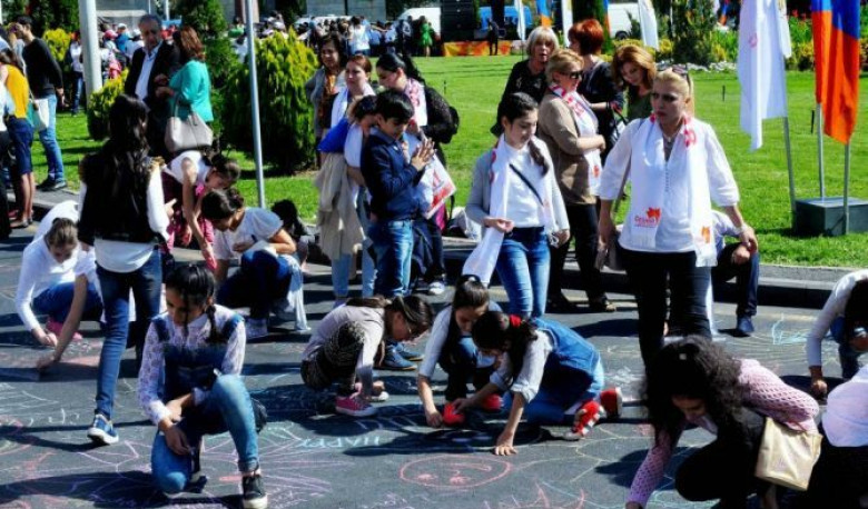 Ինչպես տեղեկացրին Երևանի քաղաքապետարանի տեղեկատվության և հասարակայնության հետ կապերի վարչությունից, տոնակատարության «Երևան՝ արևի քաղաք» կարգախոսին համահունչ՝ միջոցառման մասնակից ավելի քան 3 հազար մանուկներն արևային գույներով ու տրամադրությամբ են լցրել հրապարակը և իրենց շնորհավորանքներն ու գունագեղերազանքները փոխանցել կավճանկարների միջոցով: Աշխատանքներում տեղ են գտել մայրաքաղաքում երեխաների սիրելի վայրերը, այդ թվում իրենց բակերն ու խաղահրապարակները: