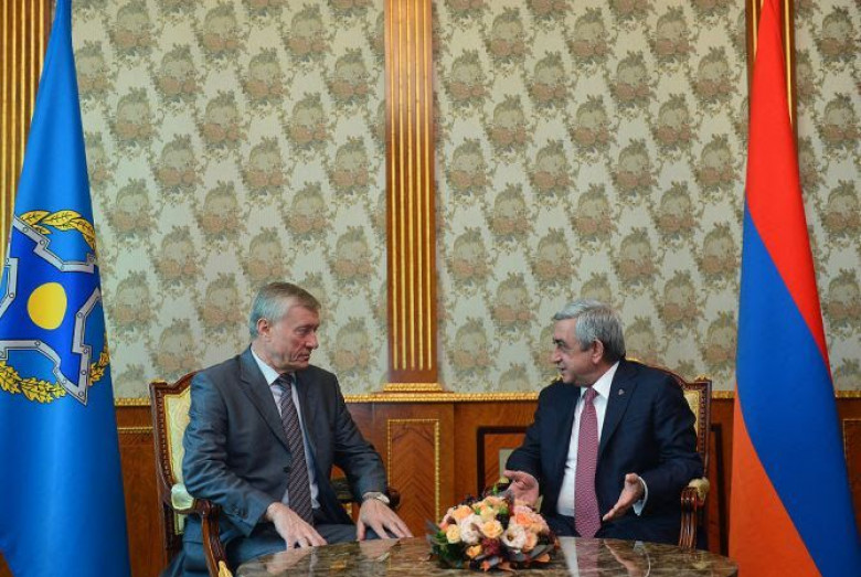 Ինչպես տեղեկացրին ՀՀ Նախագահի աշխատակազմի հասարակայնության և տեղեկատվության միջոցների հետ կապերի վարչությունից,ՀԱՊԿ գլխավոր քարտուղարը Նախագահ Սերժ Սարգսյանի հետ քննարկել է ՀԱՊԿ հավաքական անվտանգության խորհրդի նախորդ` սեպտեմբերյան և դեկտեմբերյան նստաշրջանների ընթացքում կայացված որոշումների կատարման ընթացքը, ինչպես նաև հոկտեմբերի 14-ին Երևանում կայանալիք ՀԱՊԿ Հավաքական անվտանգության խորհրդի նստաշրջանի նախապատրաստական աշխատանքները: