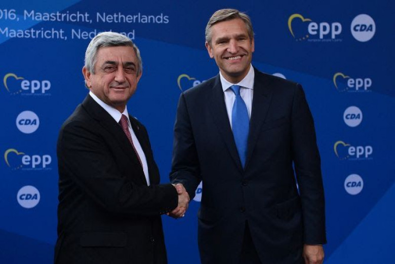 ՔաղաքականԱշխատանքային այցով Մաստրիխտում գտնվող Նախագահ Սերժ Սարգսյանն այսօր մասնակցել է Եվրոպական ժողովրդական կուսակցության (ԵԺԿ) գագաթնաժողովին: Այն վարել է ԵԺԿ նախագահ Ժոզեֆ Դոլը: Գագաթնաժողովին մասնակցել են Եվրոպական խորհրդի նախագահ Դոնալդ Տուսկը, Եվրոպական հանձնաժողովի նախագահ Ժան-Կլոդ Յունկերը, Եվրոպական միության և Արևելյան գործընկերության անդաÕ ´ երկրներից ԵԺԿ-ին անդամակցող կուսակցությունները ներկայացնող պետությունների և կառավարությունների ղեկավարները: