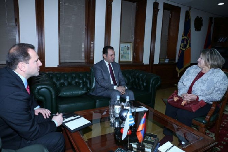 Հանդիպման ընթացքում քննարկվել են պաշտպանական բնագավառում հայ-հունական երկկողմ համագործակցությանն առնչվող հարցեր: ՀՀ պաշտպանության նախարարը նշել է, որ Հունաստանը առաջին երկրներից է, ում հետ Հայաստանը սկսկել է միջազգային համագործակցությունը պաշտպանության և խաղաղապահության բնագավառում և այդ համագործակցությունն այժմ գտնվում է բարձր մակարդակի վրա: Տիկին դեսպանն իր հերթին տեղեկացրել է, որ համագործակցությունը փոխադարձ հետաքրքրություն է ներկայացնում և հունական կողմը պատրաստ է զարգացնել այն: