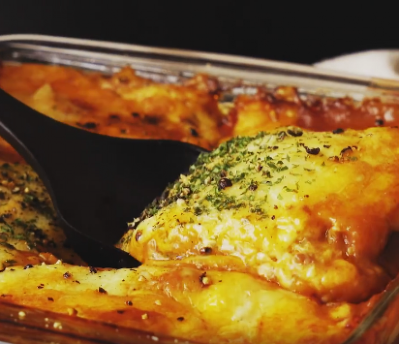 Ավելացնել տոմատի մածուկ, սպանախ, քերած պանիր ու այպես ևս երկու շերտ։