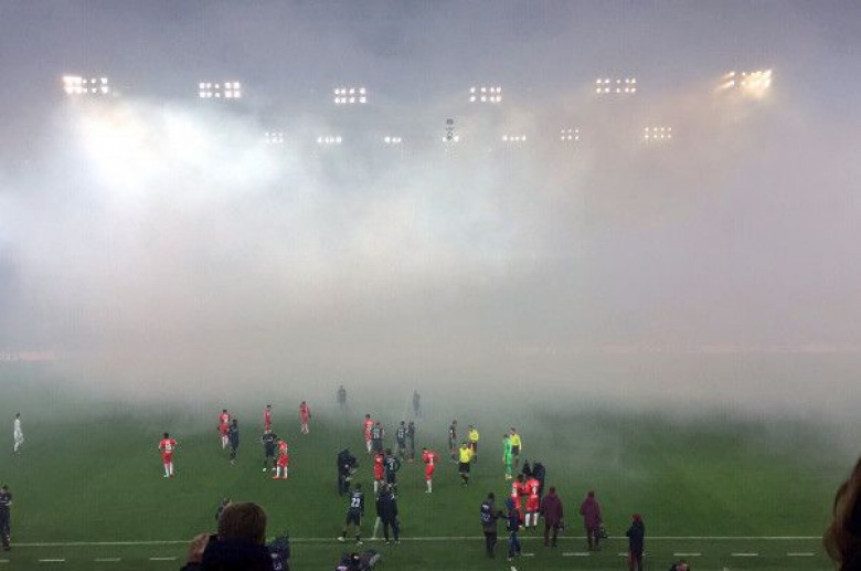 Հանդիպման մրցավարն այդպիսի որոշում է կայացրել, երբ նկատել է մարզադաշտի տրիբունաներում տեղի ունեցող անկարգությունները: Կողմերի երկրպագուները միմյանց վրա ճայթրուկներ են նետել, որի պատճառով ամբողջ մարզադաշտը ծածկվել է ծխով: