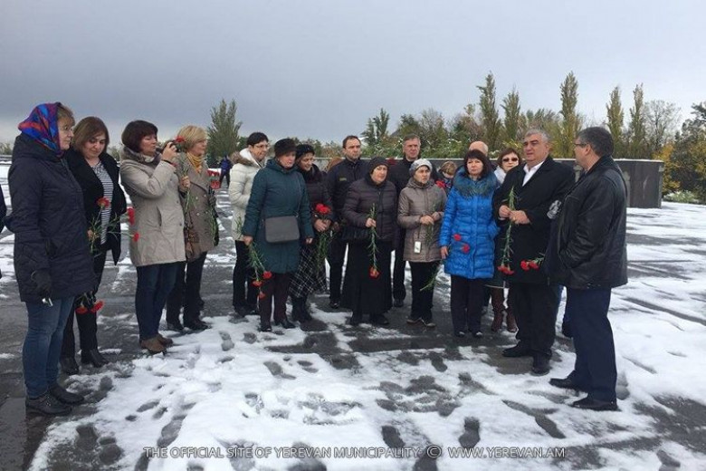 ՀասարակությունՌԴ Սանկտ Պետերբուրգի համար 80 միջնակարգ դպրոցի ուսուցչական ու աշակերտական խումբը դպրոցի տնօրեն Յուրի Կոզիրովի գլխավորությամբ հյուրընկալվել է մայրաքաղաքի Արաբկիր վարչական շրջանում: Նրանք իրենց աշնանային արձակուրդը որոշել են անցկացնել Երևանում ու ՀՀ մարզերում, ծանոթանալ մեր երկրին ու պատմամշակութային ժառանգությանը: Ճանաչողական այցի սկզբում ռուս հյուրերն Արաբկիր վարչական շրջանի աշխատակազմի ներկայացուցիչների հետ այցելել են Ծիծեռնակաբերդ, ուր ծաղիկներ են խոնարհել Հայոց մեծ եղեռնի Սուրբ նահատակների հիշատակին, եղել են Հայոց ցեղասպանության թանգարանում: ՌԴ հյուսիսային մայրաքաղաքից ժամանած մանկավարժներն ու դպրոցականները ծաղիկներ են խոնարհել նաև «Պաշարված Լենինգրադի երեխաներին» հուշարձանին: Երևանում անցկացվող օրերի ընթացքում հյուրերին բավական հագեցած ճանաչողական ու մշակութային ծրագիր է սպասվում: