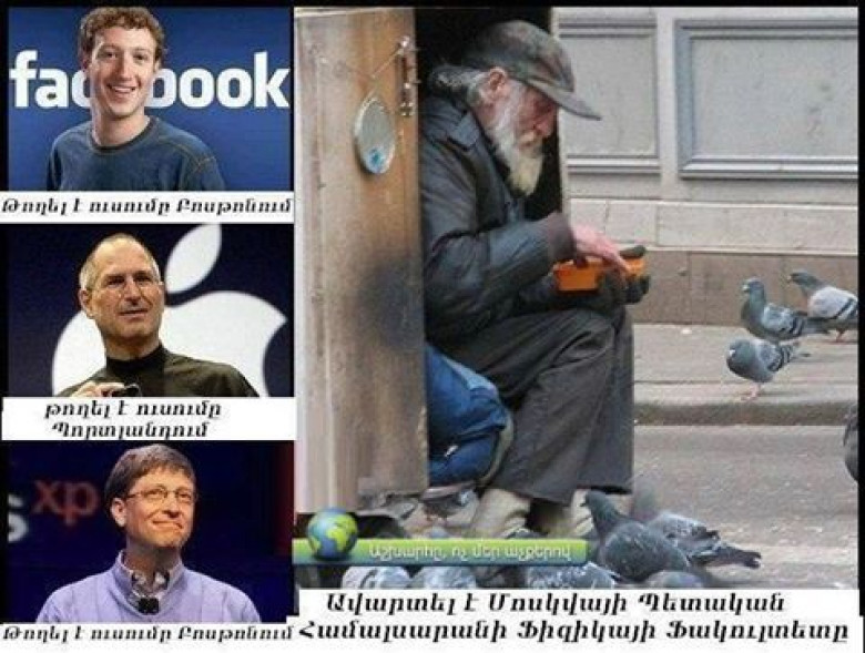 Գիտնականն ու համալսարանից հեռացվածները (լուսանկար) Lifestyle 4 Նոյեմբեր, 2016 18:05 Կիսվել Լուսանկարը ներկայացնում ենք առանց մեկնաբանության: Կիսվել