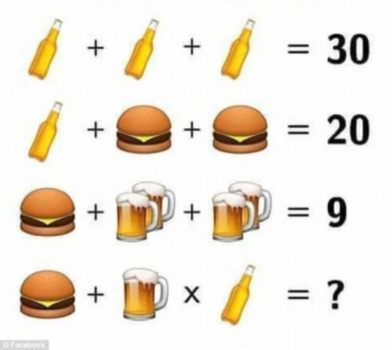 Երրորդ շարքում թաքնված է գաղտնիքը։ Պետք է հաշվի առնել բաժակների թիվը, որոնք չորս են։ Հետեւանաբար, 9-ից 5 (սենդվիչ) հանելուց հետո ստացված 4-ը 4 բաժակ գարեջրի համար է՝ 1-ական միավոր համապատասխանաբար։