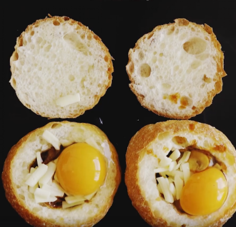 Լցոնել հացերը, ավելացնել պանիր ու ձու, դնել ջեռոց 10 րոպե։