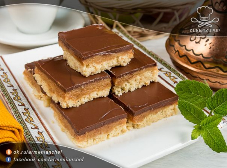 12. Թխվածքաբլիթներով տապակը տեղափոխել սառնարան ,որ սառչի, որից հետո կտրել քառակուսիներով և մատուցել: