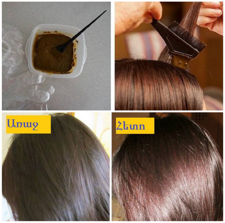 • կոսմետիկ վրձնի օգնությամբ մազերին հավասարապես քսեք ստացված զանգվածը