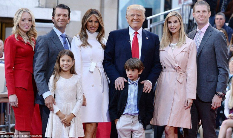 Donald Trump with members of his family (left to right) Tiffany Trump, Donald Trump Jr., Kai Trump, Melania Trump, grandson Donald Trump, Ivanka Trump and Eric Trump pictured in April 2016