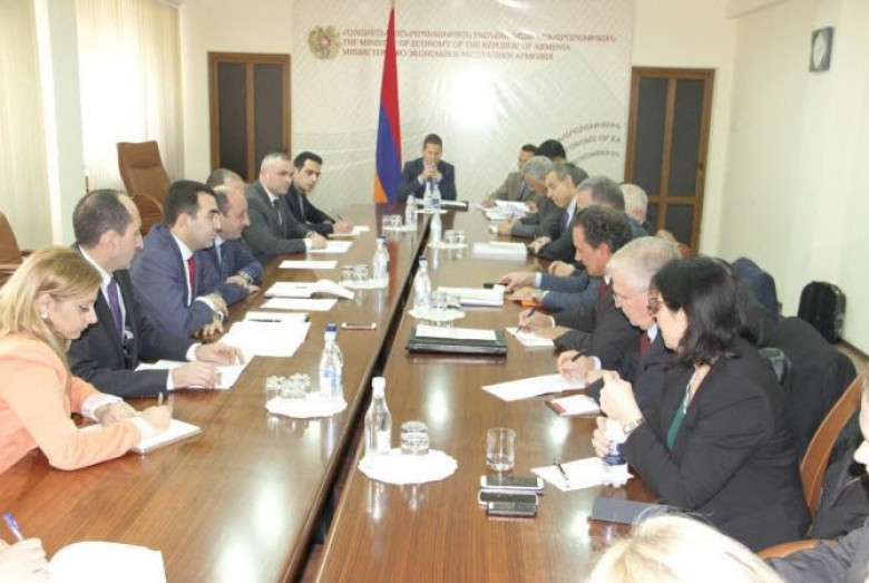 Ողջունելով հյուրերին` նախարար Կարայանն իր խոսքում նշել է, որ կարևորում է ԵՄ-ի հետ համագործակցությունը և ակնկալում է այդ համագործակցության արդյունավետ շարունակությունն ու հետագա զարգացումը: Անդրադառնալով 2017-2020թթ. ԵՄ կողմից Հայաստանի Հանրապետությանը տրամադրվելիք աջակցությանը` նախարարը ներկայացրել է աջակցության առաջնային նախընտրելի ուղղությունները, հատկապես կարևորելով բիզնես միջավայրի և ՓՄՁ քաղաքականության, ինչպես նաև առևտրի դյուրացման ուղղությունները: Վերջիններս հատկապես կարևորվել են ՀՀ կառավարության կողմից ձեռնարկված տնտեսա կան բարեփոխումների համատեքստում, որոնք ուղղված են ՀՀ տնտեսությունում ներդրումների աճին, արտահանման խթանմանը, ՓՄՁ-ների միջազգայնացմանը և դրանց համար ֆինանսական հասանելիության բարելավմանը և արդյունքում՝ կայուն տնտեսական աճի ապահովմանը:
