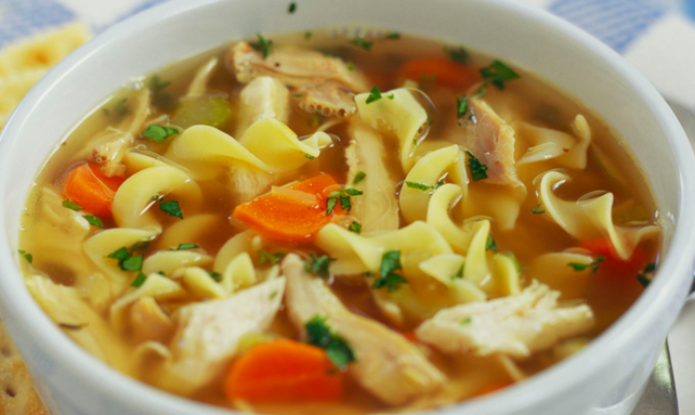 Կարագով կաթսան դնել կրակին, ավելացնել սոխ, սխտոր, նեխուր, գազար, հավի միս, մակարոն, արգանակ, աղ, պղպեղ, դափնու տերև։