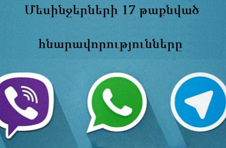 Adme.ru կայքը գրում է, որ այսօր գրեթե բոլոր սմարտֆոններում ներբեռնված են մեսինջերներ, որոնք շատ դեպքերում փոխարինում են sms հաղորդագրություններին ու զանգերին: Կայքը ներկայացրել է 17 թաքնված հնարավորություն, որոնք կարևոր է իմանալ: