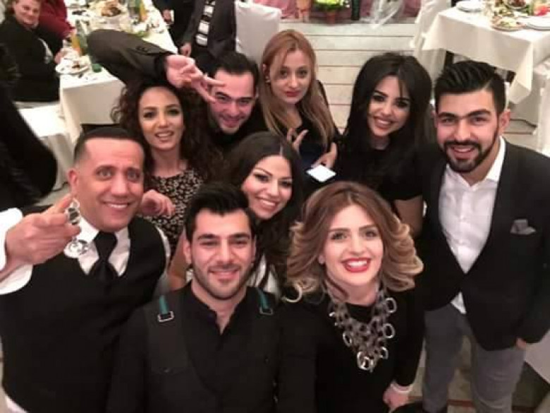 Հարաբերություններն օրինականացնելու առաջին քայլը կատարած զույգը երեկ խնջույք է կազմակերպել ռեստորանային համալիրներից մեկում՝ հրավիրելով հարազատներին, ընկերներին եւ գործընկերներին, որոնց թվում՝ ամուսիններ Անահիտ Շահբազյանին եւ Կարեն Զադիրյանին, Վիգեն Ահարոնյանին, Նարեկ Մակարյանին: Վերջինս մի քանի կատարում է նվիրել սիրահարներին: