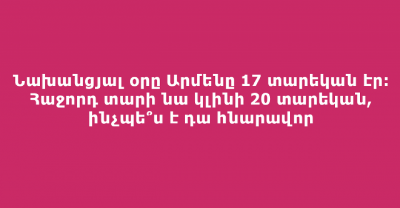Նախանցյալ օրը Արմենը 17 տարեկան էր։ Հաջորդ տարի նա կլինի 20 տարեկան, ինչպե՞ս է դա հնարավոր։