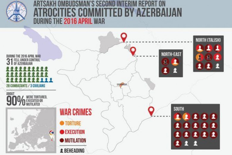 ԼՂՀ մարդու իրավունքների առաջին պաշտպան Յուրի Հայրապետյանն ապրիլի 21-ին հրապարակել է ադրբեջանական դաժանությունների վերաբերյալ նախնական հանրային զեկույց: Զեկույցը վերաբերում է ադրբեջանական ագրեսիայի հետևանքով մարդու իրավունքների բազմաթիվ խախտումներին, այդ թվում՝ գլխատումների, խոշտանգումների, զինծառայողների և քաղաքացիական անձանց մարմինների անարգման փաստերին, ինչպես նաև քաղաքացիական օբյեկտների հրետակոծությանը: Զեկույցը մշակվել է բաց աղբյուրների հիման վրա (մամուլ, սոցիալական ցանցեր և այլն):