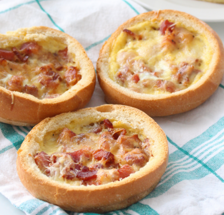 Հացի միջուկը հանել, լցնել բեկոնը, ձուն, պանիր քերել, դնել ջեռոց։