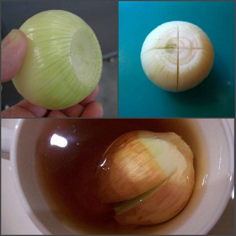 Գլուխ սոխը դրեք տաք թեյի մեջ ու թողեք՝ թրմվի 5-10 րոպե։