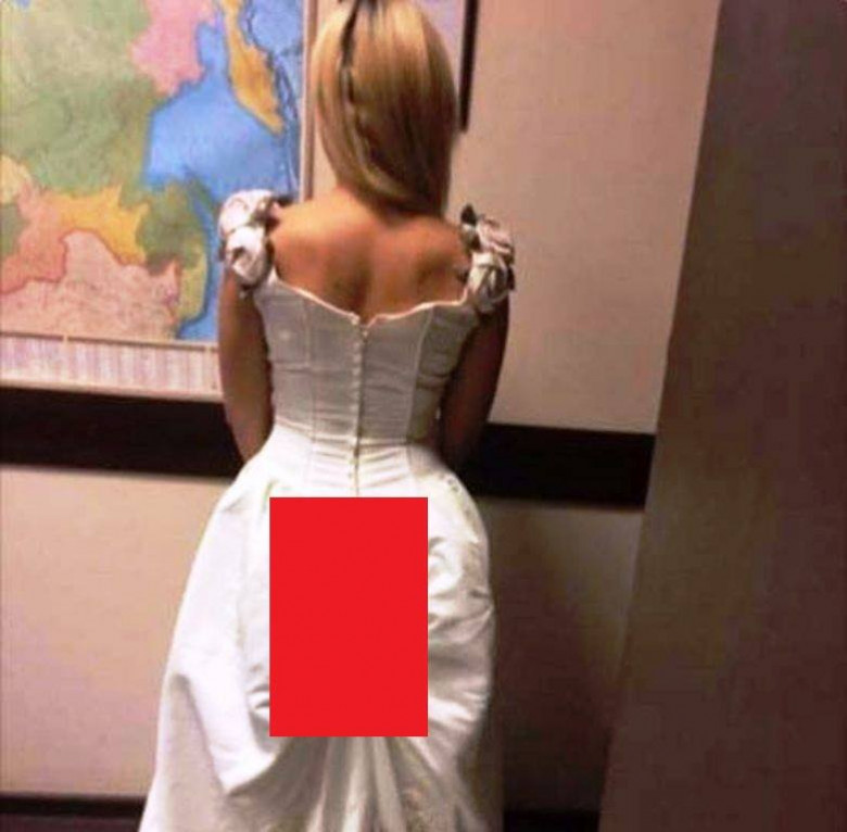 Ռուսներից մեկը 10 հազար ռուբլիով վաճառում է այս հարսի զգեստ: Առաջին հայացքից և՛ գինն է հարմար, և՛, կարծես թե, տեսքը: Բայց բավական է տեսնեք հետևի ծաղիկերը՝ միանգամից կհիասթափվեք: Ճիշտ է, ամեն մարդ ըստ իր այլասերվածության կորոշի, թե ինչի հետ դրանք ասոցացնել, բայց այնուամենայնիվ, շատ անճաշակ է.