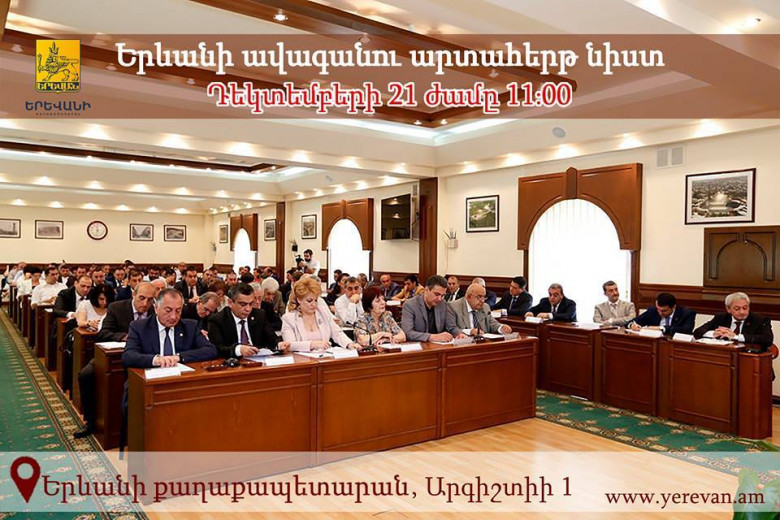 2016 թվականի դեկտեմբերի 21-ին` ժամը 11.00-ին, կգումարվի Երևան քաղաքի ավագանու նիuտ՝ հետևյալ օրակարգով.