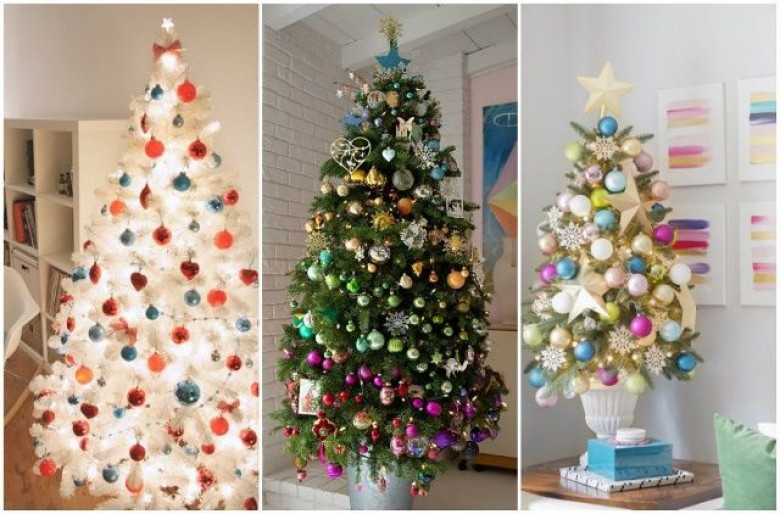 2. Վառ խաղալիքներով ուրախ տոնածառ։ Այս դեպքում կարող եք համադրել տարբեր գույների խաղալիքներ, ընդ որում, դրանք կարող են լինել թե հին, թե նոր։