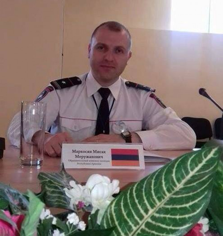 ՀասարակությունՈստիկանության մայոր Միսակ Մերուժանի Մարկոսյանը ՀՀ ոստիկանապետ գեներալ-լեյտենանտ Վլադիմիր Գասպարյանի կողմից պարգևատրվել է «Ոստիկանությունում գերազանց ծառայության համար» կրծքանշանով: