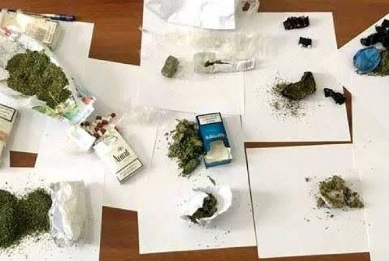 Վերջինիս մոտից հայտնաբերվել և առգրավվել է 250 գրամ կանաչադեղնավուն զանգված, 2 լիտր սպիրտ, 1 հատ «B 8» գրառմամբ դեղահաբ, 29 դեղապատիճ և 1 բջջային հեռախոս: