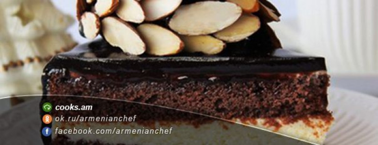 - Պատրաստում ենք շոկոլադե ջնարակը: Ջուրը, շաքարավազը, կակաոն և սերուցքը մարմանդ կրակին եփում ենք 10 րոպե: Երբ զանգվածը եռում է, հանում ենք կրակից և ավելացնում 5 ճ/գդ ջրում թրջած ժելատինը և զանգվածը հասցնում 40 աստիճանի: Այնուհետև լցնում ենք բիսկվիթի վրա և տեղափոխում սառնարան մինչ ջնարակի սառչելը: Տորթը հանում ենք սառնարանից, զարդարում կոներով և ճյուղերով: