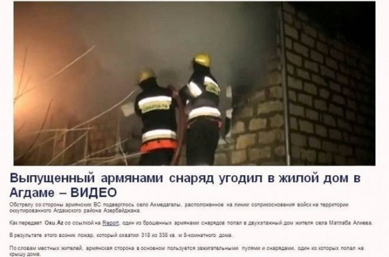 «Ի հավելումն մեր կողմից այսօր տարածված հաղորդագրության, որով հերքվել է ադրբեջանական կողմի հերթական ապատեղեկատվությունն առ այն, թե իբր ղարաբաղյան կողմից Ակնայի ուղղությամբ ձեռնարկված արկակոծության արդյունքում հրդեհվել է համանուն շրջանի Ահմեդաղալը գյուղի տներից մեկը, հրապարակում ենք Ադրբեջանի արտակարգ իրավիճակների ծառայության այսօր նույն դեպքի մասին տարածած հաղորդագրությունը, որում հրդեհի պատճառ է նշվում էլեկտրալարերի կարճ միացումը: Ադրբեջանական քարոզչության շինծու էության մեջ համոզվելու համար առանց խմբագրման ու մեկնաբանության տվյալ դեպքի մասին ձեզ ենք ներկայացնում հետևյալ երկու հաղորդագրությունների բնագրերը, որոնցից մեկը հրապարակվել է ադրբեջանական «AZERPRESS»-ում, իսկ մյուսը՝ «Oxu.az» կայքում:
