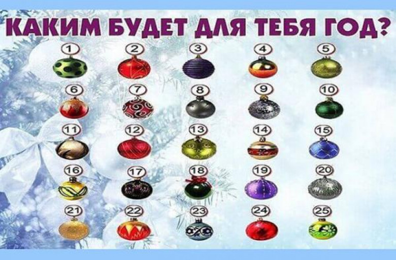 Յուրաքանչյուրն էլ ցանկանում է իմանալ, թե ինչ է սպասվում իրեն 2017թ.՝ Աքաղաղի տարում։ Ուշադիր նայեք նկարում պատկերված ամանորյա խաղալիքներին և ընտրեք այն խաղալիքը, որը ձեզ ամենաշատն է դուր գալիս։