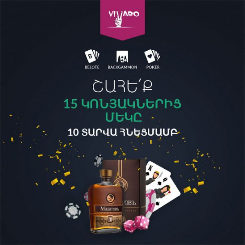 Մադաթով կոնյակի 10 տարեկան հնեցման թողարկումն այս պահին ընկերության լավագույն արտադրանքն է: Հենց այսպիսի Մադաթով կոնյակ նվեր կստանան Վիվառոյի կազմակերպած մրցաշարերի հաղթողները: Իսկ մրցաշարերն անցկացվելու են ամենատարածված խաղերում՝ Բլոտ, Նարդի և Պոկեր: